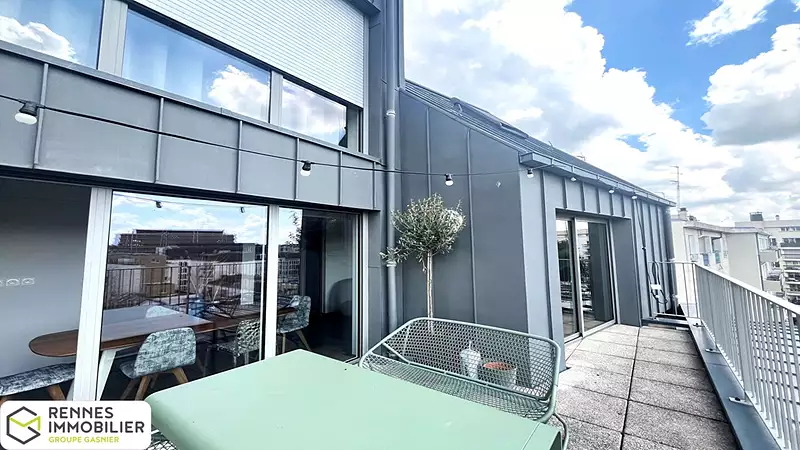 Nouveau ! Pépite ! Venez découvrir ce sublime appartement penthouse situé, seul, au dernier étage d'une résidence moderne avec ascenseur, niché au coeur du quartier animé de St Hélier ( commerces de qualité, restaurants, et théâtre) et proche de la gare et du métro. Vous serez séduits par ses vues incroyables et sa luminosité. l'appartement est composé d'une entrée avec placard, d'une pièce de vie avec cuisine Leicht aménagée et équipée ouverte sur une terrasse plein sud, une chambre en rdc avec salle d'eau privative et espace buanderie, un wc. A l'étage supérieur un salon mezzanine, une grande chambre avec dressing privatif, une seconde chambre avec placard, une salle d'eau, wc. L'appartement est vendu avec un garage fermé et un stationnement couvert. A voir rapidement! (2.24 % honoraires TTC à la charge de l'acquéreur.) Copropriété de 38 lots - dont 21 lots habitation. (Pas de procédure en cours). Charges annuelles : 1869.75 euros.