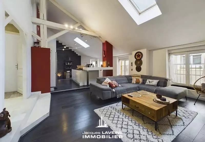 EXCLUSIVITÉ JLI! Dans petite commune dynamique, proche ZAC d'augny, desservie par une gare et train allant à Luxembourg, cet appartement coup de coeur vous séduira par son charme, refait à neuf, il comprenant une belle pièce à vivre avec poèle à granules, une cuisine équipée, un dégagement, trois chambres dont une avec en mezzanine un espace bureau confortable, salle d'eau avec espace lingerie, un Wc. État impeccable, chauffage individuel. En annexe, une cave et un paking interieur pour moto ou stokage.