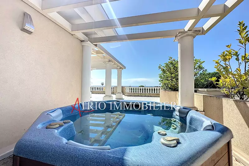 Exceptionnel appartement en duplex dans résidence haut de gamme, proche des accès et des commodités, ce magnifique appartement offre plusieurs espaces dont 120m² habitable et de meme pour les extèrieurs, profitez au dernier étage d'un magnifique jaccuzzi avec vue mer, garage en sous sol.