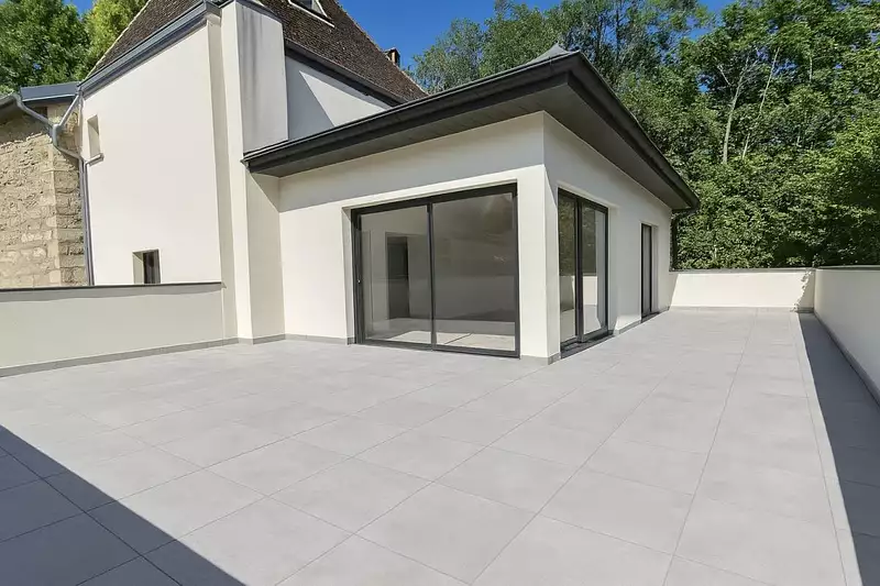 Une vaste pièce de vie lumineuse donnant accès à une terrasse privative de 40 m²