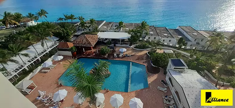Splendide vue mer depuis la terrasse de ce vaste 3 pièces de standing d'une superficie de 120m2, situé dans une résidence en partie hollandaise. Il comprend un grand séjour, une cuisine entièrement rénovée et équipée, balcon avec vue mer. Une master chambre avec salle de bains en marbre, balcon avec vue mer également. Une seconde chambre avec salle de bains attenante. wc visiteurs, Salle de sport, piscine, maintenance climatisation, ascenseurs, internet et service hotelier compris dans les charges. Jardin avec accès plage, Parking couvert. Casino et Golf 9 trous à proximité.A noter l'absence de taxe foncière, de taxe d'habitation, de plus-value à la revente et de droits de succession en partie hollandaise, Frais de notaire réduits
