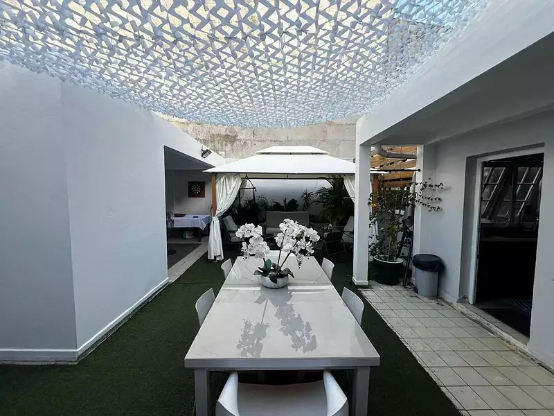 Extérieurs : Une magnifique cour intérieure de 70 m2, idéale pour vos moments de détente, et un balcon de 10 m2