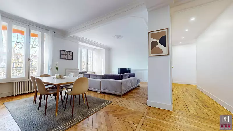 BROTTEAUX - Au coeur d'un quartier emblématique, au pied de tous les commerces et transports, à quelques pas du Parc de la Tête d'Or, nous vous proposons au 5ème étage avec ascenseur, un magnifique appartement familial de 122,39 m2 au sol (118,37 m2 Carrez) traversant et lumineux, intégralement rénové en conservant le charme de l'ancien. Une entrée spacieuse avec vestiaire va distribuer les pièces de la manière suivante : un vaste séjour baigné de lumière grâce à ses deux grandes fenêtres, une cuisine américaine aménagée et parfaitement intégrée dans son espace, une véritable suite parentale avec dressing et salle de bains (disposant d'une fenêtre avec vue sur les toits), un dégagement avec rangements desservant deux autres chambres ayant accès sur une grande salle de bains communicante. Fenêtres triple vitrage et stores électriques. La copropriété bénéficie d'un accès sur un grand jardin intérieur. Cave et grenier. Terrain H.C.L. Pas de procédure en cours, charges annuelles d'un montant de 2760 euros. A découvrir sans tarder. Contact : Guillaume GERMAIN Copropriété de 14 lots - dont 14 lots habitation. (Pas de procédure en cours). Charges annuelles : 2760 euros.