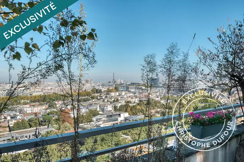 Dans une résidence des années 70, ce duplex de 122 m2 au 7e et 8e étage bénéficie d’une superbe vue sur la ville (de la Défense à la Tour Eiffel).