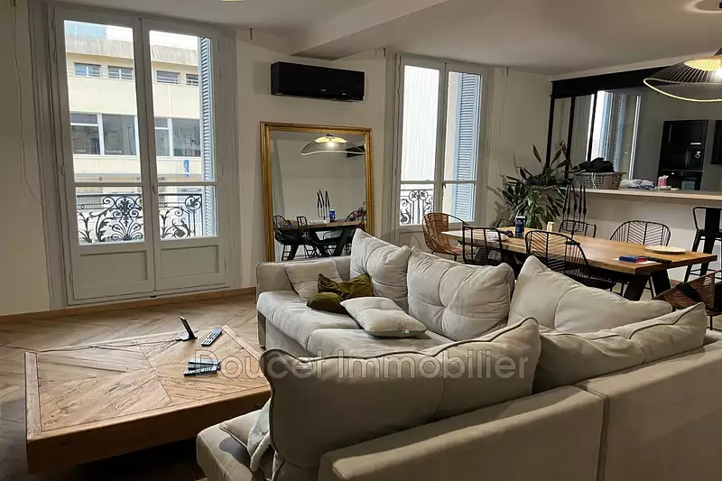 Béziers, secteur poste avenue Clemenceau. Doucet immo a le plaisir de vous présenter un appartement de type T4 lumineux, situé au premier étage d'une petite copropriété de deux étages. Il développe une superficie habitable 'loi Carrez' de 123 m² composé comme suit : un grand séjour, cuisine de 50 m², cuisine ouverte et équipée, 3 chambres avec placards, deux salles d'eau, terrasse couverte de 20 m². Prestations et matériaux de qualité. À VOIR
