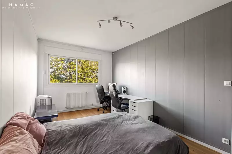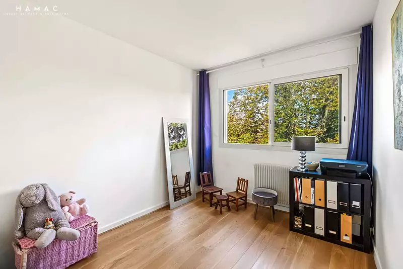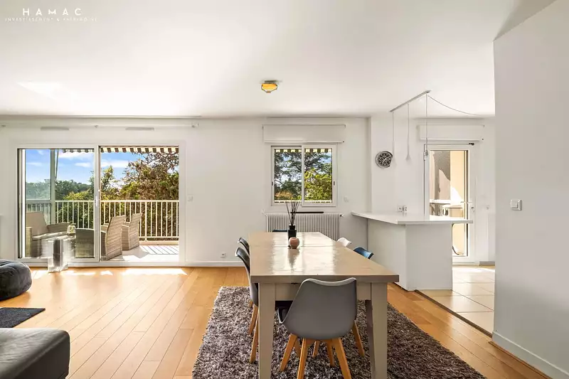 Ce bien offre un séjour spacieux avec cuisine ouverte, exposé plein sud, donnant sur une grande terrasse de 19 m² sans vis-à-vis avec vue dégagée sur le parc. L'espace nuit se compose de 4 chambres, dont une suite parentale avec salle de bains privative, ainsi qu'une seconde salle de bains indépendante.