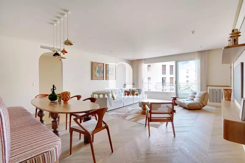 Dans un élégant immeuble en pierre de taille des années 50, découvrez ce somptueux appartement refait à neuf avec des matériaux haut de gamme, alliant raffinement et confort moderne.