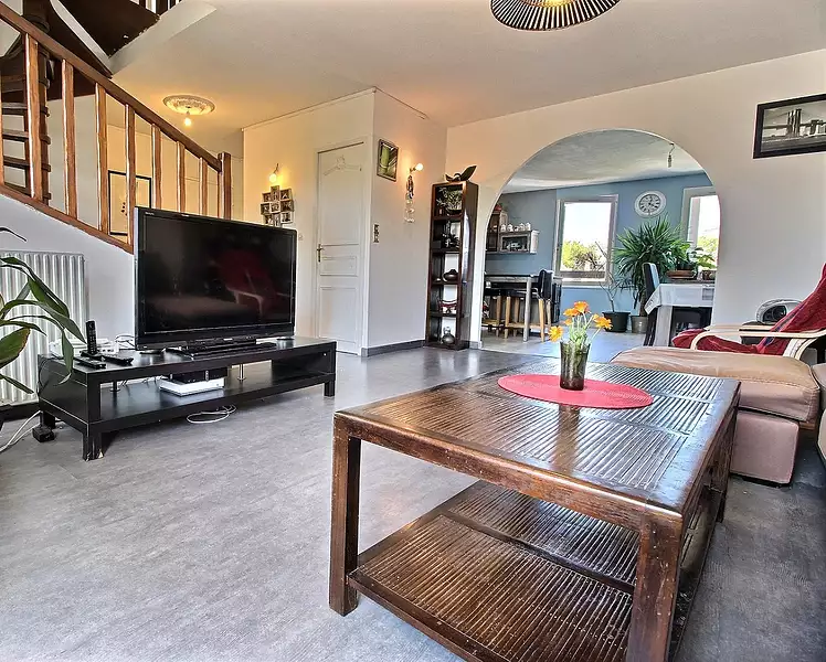 En vente chez ERA IMMOBILIER - Appartement 5 pièces en DUPLEX de 124m2 au sol et 96m2 carrez, comprenant une entrée, un double séjour avec terrasse, cuisine équipée, trois chambres, une salle de bains et wc séparé. Place de parking privé en sous sol.