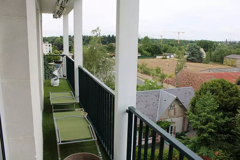 OLIVET résidence BEAUSEJOUR- Grand appartement très lumineux de 125 m2 au 4 ème et dernier étage d'une résidence au sein d'un magnifique parc centenaire au bord du Loiret - Très grand salon plein sud vers balcon et store - Vue très dégagée - 2 / 3 x chambres (Une des chambres ayant été décloisonnée pour agrandir le salon à 56 m2) - Entièrement rénové avec goût : Cuisine contemporaine, beaux parquets chêne, volets électriques centralisés, isolation des murs et plafond - Places de parkings sécurisés en sous-sol avec 3 / 4 x places - Ascenseur - Cave - Piscine et tennis disponibles pour les copropriétaires - Canotage possible sur les bords du Loiret - Arrêt de tramway tout proche et arrêt de bus devant la résidence.