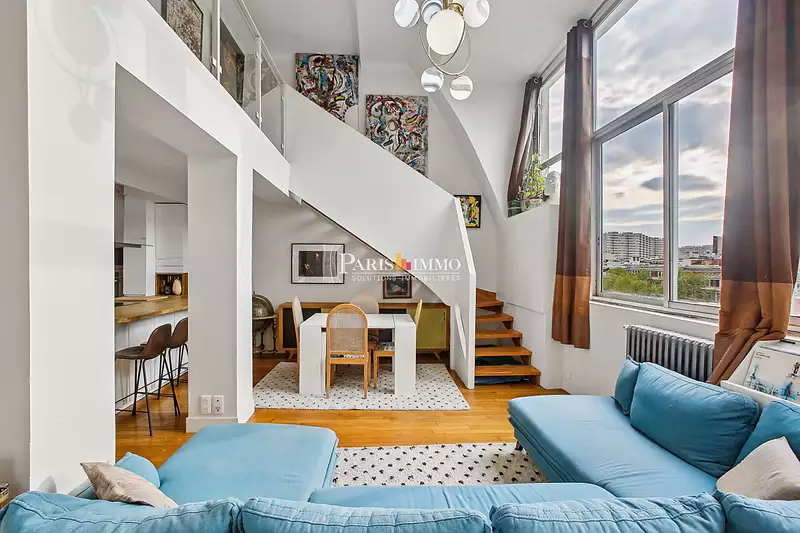 PARIS IMMO vous propose en exclusivité Superbe duplex avec terrasse panoramique - Dernier étage - Immeuble Art Déco 1929. Situé au sommet d'un bel immeuble Art-Déco érigé en 1929, ce duplex vous séduira par ses volumes, sa lumière et sa terrasse à couper le souffle. Véritable atelier d'artiste repensé par architecte, ce bien rare développe environ 125 m² habitables (dont 110 m² loi Carrez) et s'accompagne d'une spectaculaire terrasse de 55 m² offrant une vue panoramique à 360° sur tout Paris, avec la Tour Eiffel en ligne de mire. Agencement : 7e étage : Entrée ouvrant sur une pièce de vie de 50 m² baignée de lumière, Cuisine américaine entièrement équipée, Superbe verrière atelier de 12 m² (hauteur sous plafond de 4,7 m) orientée Sud-Ouest, Suite parentale avec salle de bain, WC séparés. 8e étage : Deux chambres d'enfants, Une salle de bain avec WC, Un espace bureau idéal pour le télétravail ou les loisirs. 9e étage : Terrasse plein ciel de 55 m2, de plain-pied, avec une vue exceptionnelle sur les toits de Paris, la Tour Eiffel et tout l'horizon parisien. Caractéristiques : Bien traversant, exposé Nord-Est / Sud-Ouest Volumes atypiques et charme authentique de l'ancien Immeuble sécurisé avec ascenseur, cave incluse Environnement calme et résidentiel, à proximité des commerces, transports et écoles Ce bien d'exception allie architecture, lumière et extérieur, idéal pour les amateurs de lieux uniques et de vues spectaculaires. Paris Immo, immatriculée au RCS de Paris sous le numéro 798 380 051. Les informations sur les risques auxquels ce bien est exposé sont disponible sur le site georisques.gouv.fr Copropriété de 73 lots - dont 44 lots habitation. (Pas de procédure en cours). Charges annuelles : 7816 euros.