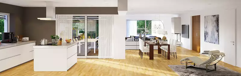 Séjour lumineux de 52 m² avec cuisine américaine, idéal pour vos moments de convivialité