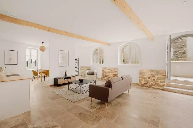 Dans une petite copropriété de 5 lots, découvrez ce magnifique appartement de 128 m² situé en plein centre de Solaize, dans un bâtiment chargé d'histoire datant du XVe siècle entièrement rénové.