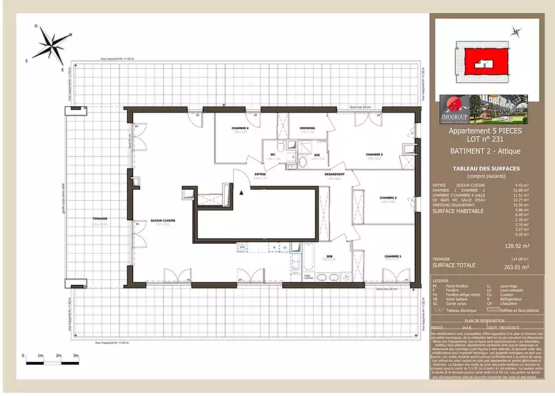 | 128,92 m² - 5 pièces - 4 chambres | Dernier étage (3ème) avec ascenseur |