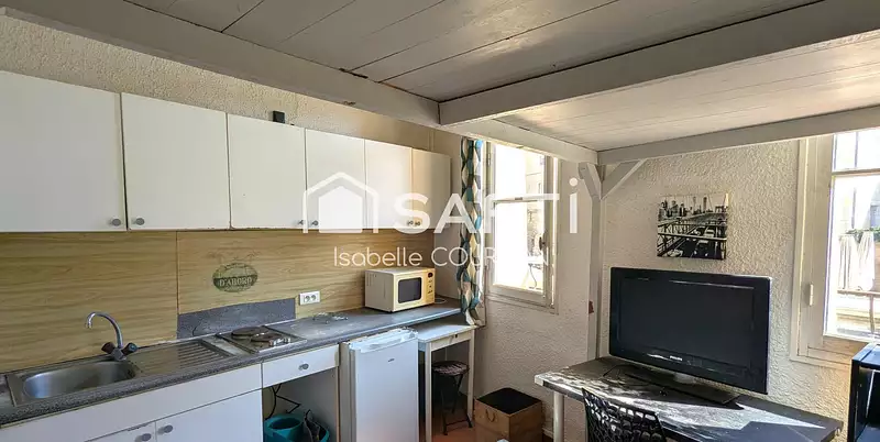 Au 1er étage d'un petit immeuble avec entrée sécurisée, il se caractérise par une optimisation intelligente de l'espace. Il se compose d'une mezzanine avec couchage double, d'un coin salon/bureau, d'une cuisine, d'un grand placard à l'entrée, ainsi qu'une salle d'eau avec WC et rangements en hauteur. Ce bien fonctionnel et bien agencé offre un cadre de vie confortable et pratique au cœur de la ville.