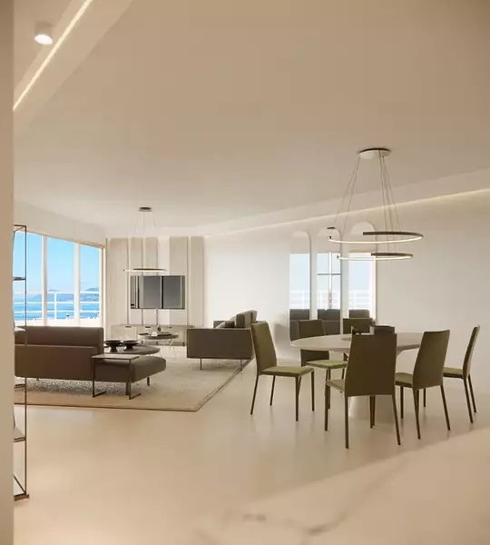 L'appartement est composé d'une pièce de vie avec cuisine ouverte et de quatre chambres en suite.