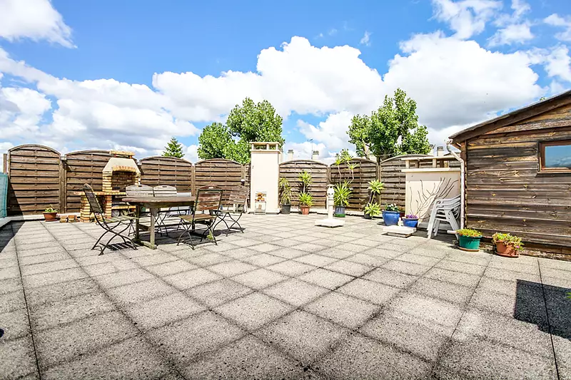 RUE DU FORT - SABLONS - COMME UNE MAISON SUR TOIT Appartement + studio de musique L'étude Valri a le plaisir de vous proposer en exclusivité un magnifique appartement familial d'une surface de 84m2 assorti de deux extérieur de 15 et 105 m2, un studio de musique de 16m2, parking et grande cave. Niché au 3ème et dernier étage d'une petite copropriété gérée bénévolement et entièrement ravalée, cet appartement offre un bel espace de vie composé de trois chambres, un vaste séjour ouvert sur un balcon de 15m2, une cuisine équipée, une salle de bains et un w.c séparés. Vous serez comblés par sa lumière et son ensoleillement, ainsi que par ses espaces extérieurs. L'appartement jouit d'une vue dégagée sur le bois de Clamart et la forêt de Meudon, sans aucun vis-à-vis. Le toit terrasse offre une multitudes de possibilités d'aménagements. Idéal pour une famille de part sa proximité immédiate avec le collège Alain FOURNIER et le Lycées Jacques MONOD, ainsi que les nombreux espaces verts environnants. L'appartement est complété par un emplacement de stationnement en sous-sol, une grande cave, ainsi qu'un studio de musique entièrement équipé et réalisé par des professionnels du secteur. A VISITER SANS TARDER SUR RDV. (4.38 % honoraires TTC à la charge de l'acquéreur.) Copropriété de 10 lots - dont 3 lots habitation. (Pas de procédure en cours). Charges annuelles : 4200 euros.