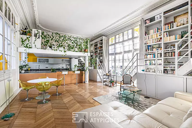 Cet appartement de 134 m² (128,9 m² loi Carrez) allie élégance et caractère unique, situé à l'étage noble d'un bâtiment de 1919 au charme historique. La façade de l'immeuble, récemment restaurée, se distingue par ses détails architecturaux : les portes cochères d'origine, les arches élégantes et les ornements sculptés confèrent à cet édifice une allure noble et intemporelle. Le balcon en pierre, orné de motifs délicats, surplombe l'entrée, ajoutant un cachet supplémentaire à cette adresse prestigieuse. A l'intérieur, un vaste séjour baigné de lumière met en valeur une cuisine américaine ouverte et deux mezzanines qui créent des espaces de vie uniques. Grâce à sa disposition traversante, l'appartement bénéficie d'une luminosité exceptionnelle tout au long de la journée. Cet espace de réception s'ouvre sur un balcon de 2,3 m2 exposé sud. L'appartement comprend également une chambre principale traitée en suite, avec salle d'eau et dressing, ainsi qu'une seconde chambre (ou bureau) disposant de sa propre salle de bains. Un emplacement de stationnement dans la cour est disponible en sus à 42 000 euros, un atout rare dans le quartier. Cet appartement traversant et baigné de lumière séduira les amateurs de biens d'exception en quête d'un cadre de vie élégant et singulier, dans un bâtiment au cachet indéniable. Bien soumis au régime de copropriété. Chauffage inclus dans les charges. Métro Pereire (Ligne 3) Contact : Joachim +33 6 23 54 34 32 Copropriété de 20 lots - dont 12 lots habitation. (Pas de procédure en cours). Charges annuelles : 7284 euros. JOACHIM DRUART (EI) Agent Commercial - Numéro RSAC : 838 692 671 - Paris.