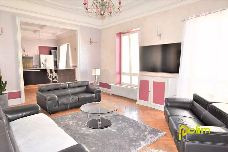 Au premier étage, appartement de caractère T4 comprenant : cuisine équipée ouverte sur salon/séjour de 56m2, 2 chambres de 21m2 chacune, belle salle de bains moderne, WC. Belles prestations, moulures sous plafond. A découvrir rapidement !!!