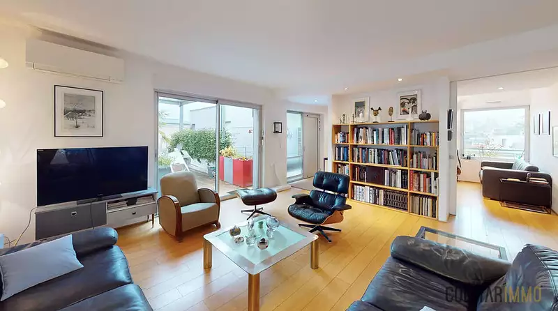 Situé en fond d'impasse, dans une résidence haut de gamme construite en 2011, cet appartement de type F5 offre une surface d'environ 130,70 m² loi carrez au 1er étage avec ascenseur d'une copropriété intimiste de quatre logements. Il se compose d'une entrée, d'un toilette indépendant, d'un espace bureau, d'une première chambre avec dressing, d'un couloir, d'une salle de bains, d'une seconde chambre avec placard, d'une salle d'eau avec toilette, d'une troisième chambre ainsi que d'un local technique avec buanderie. Côté vie de jour, un vaste salon-séjour avec cuisine équipée ouverte s'ouvre sur sa terrasse offrant un cadre agréable et lumineux. En annexe : un garage fermé incluant une partie cave ainsi qu'une place de parking privative Un bien rare, moderne et élégant, alliant confort, prestations de qualité et environnement calme, à proximité immédiate des commodités. (4.90 % honoraires TTC à la charge de l'acquéreur.) Copropriété de 12 lots - dont 4 lots habitation. (Pas de procédure en cours). Charges annuelles : 1574 euros.