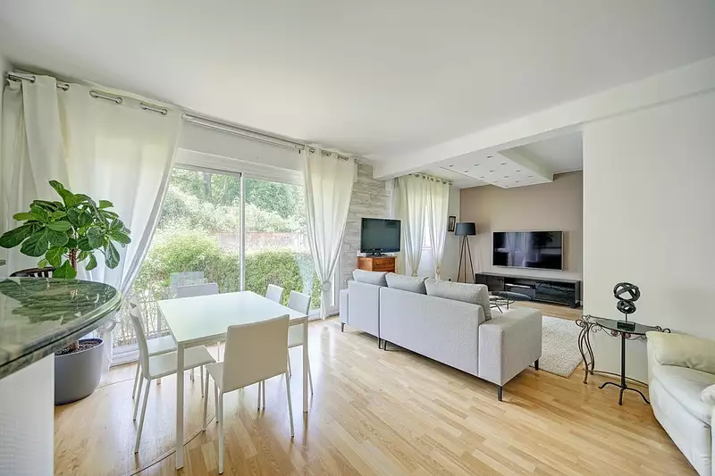 Centre-ville à 6 mn du RER et à proximité immédiate des commerces, au rez-de-chaussée d'une résidence de standing de 1963 avec gardien et ascenseur, spacieux appartement de réception et familial de 133 m2 loi carrez, agencé comme suit : Vaste entrée avec dressing, réception double donnant sur un jardinet, cuisine ouverte aménagée équipée, une suite parentale avec salle de douches/bains wc, trois chambres, une salle de douches, une buanderie, nombreux rangements et wc séparés. Deux caves ainsi qu'une place en sous-sol complètent cette offre. Emplacement central proche des commerces, écoles, résidence de standing avec ascenseur. Copropriété de lots Charges : 451 Euros/Mois : Chauffage, Eau chaude, Ascenseur, gardien, eau froide inclus Taxe foncière : 2 552 euros / an Prix incluant 4.17 % d'honoraires charge acquéreur ( 720 000 Euros Honoraires Exclus) (4.17 % honoraires TTC à la charge de l'acquéreur.)