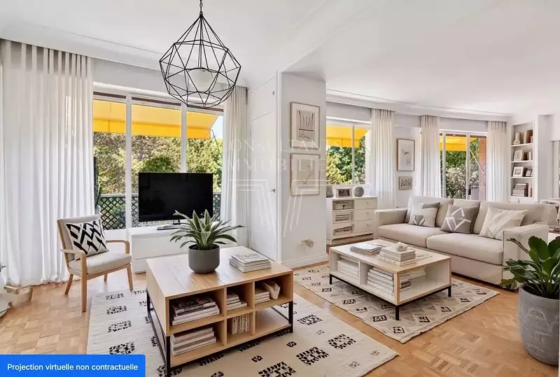 Au troisième étage d'un immeuble récent de standing, appartement d'une superficie de 133 m² sans aucun vis-à-vis, bénéficiant d'une vue dégagée sur le ciel et la verdure. L'ascenseur arrivant directement dans ce bel appartement climatisé, il comprend une entrée, un vaste triple séjour ensoleillé disposant de deux balcons orientés plein sud, une cuisine dînatoire, une suite parentale avec dressing, salle de bains et toilettes, une seconde chambre avec salle de douche, possibilité d'une 3ᵉ chambre, des toilettes invités. Dressings et nombreux placards.