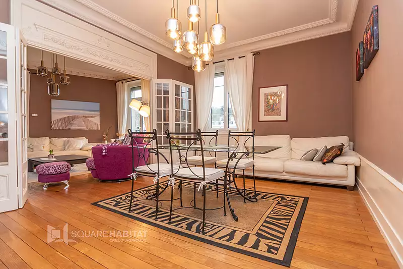 Square Habitat vous invite à découvrir ce bien d'exception au charme atypique avec hauteur sous plafond et moulures de style haussmannien. Opportunité rare sur le marché, alliant grand standing et rénovation contemporaine qualitative. Idéalement situé à Lons-Le-Saunier, à deux pas de la gare et de toutes commodités. Au deuxième étage sans ascenseur, Il bénéficie d'une luminosité traversante grâce à ses nombreuses ouvertures. Il est composé de manière suivante: - Un couloir d'entrée - Une cuisine - Un cellier - Une grande pièce de vie d'environ 42m² avec balcon - Trois chambres dont une avec placard - Un bureau - Une salle d'eau - Un WC. Un cave et un grenier, complète ce bien. Cet appartement offre un cadre de vie chaleureux et élégant, coup de coeur garantie! Aucun travaux à prévoir, à visiter sans tarder !