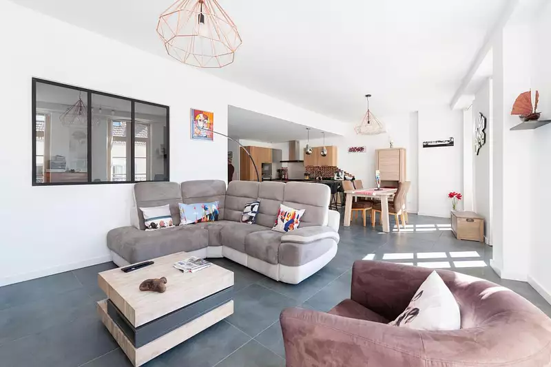 Vous serez séduit par son vaste séjour baigné de lumière prolongé par une cuisine aménagée et équipée.