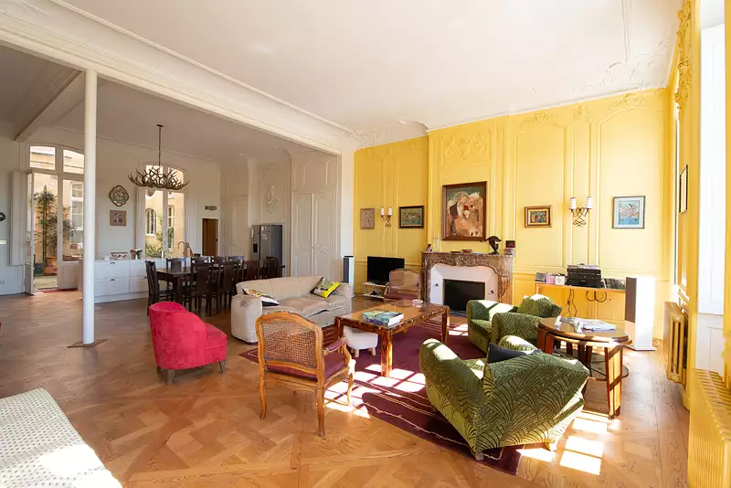 Quais des Chartrons, au premier étage d'un magnifique immeuble en pierre, cet appartement entièrement rénové offre une vatse pièce de réception ornée de belles prestations anciennes conservées ou restaurées et profite d'une très belle hauteur sous plafonds . Une cuisine sur mesure ouverte et fonctionnelle qui s'intègre parfaitement dans l'espace donne sur un charmant patio en pierre végétalisé. L'espace nuit à l'arrière dispose d'une chambre et sa salle d'eau avec un accès indépendant possible, un wc et d'une seconde chambre au calme avec salle d'eau et dressing profitant d'une vue dégagée sur les toits. De nombreux rangements intégrés et un wc d'invités finalisent ce lieu hors normes et à l'emplacement très prisé au pied du tramway et commerces. Possibilité location de parking à quelques mètres. Copropriété de 6 lots (Pas de procédure en cours).