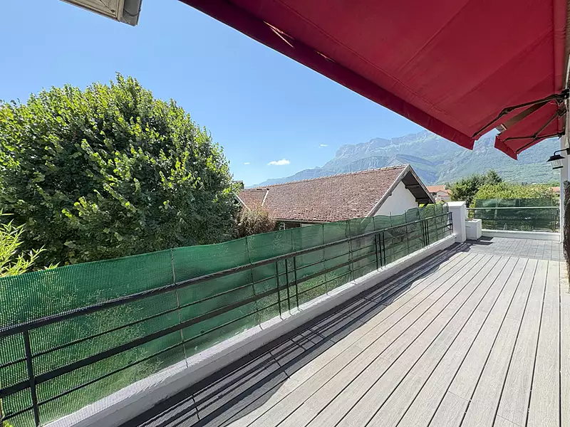 GRESIVAUDAN, Tencin, petite copropriété de 4 lots avec faible charges, 1er et dernier étage, spacieux T5 en BE de 137 m² composé d'une vaste entrée, cuisine équipée, grande et lumineuse pièce de vie de 47 m² agrémentée d'un poêle à granulés, terrasse exposée Sud de 22 m², 4 chambres dont une suite parentale avec salle d'eau et dressing. + salle de bains. Grandes baies vitrées dans le séjour, double vitrage, volets roulants, porte blindée., partie nuit climatisée. Vendu avec 2 places de parking privatives + 1 cave et un local commun pour vélos ou stockage. Volumes, vue montagne et luminosité au RDV, visitez avec SQUARE HABITAT Le Touvet 04 76 92 84 15