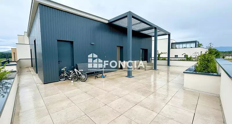 Dans une résidence très récente et de grand standing, magnifique duplex T5 meublé de 138 m² au dernier étage avec ces terrasses privatives de 100 m², vues sur le Jura, le Mont Blanc et le Salève. A proximité du futur Tram pour Genève et de toutes commodités.