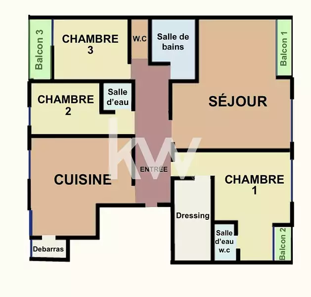 L’appartement de 132m2 se compose ainsi : une galerie d'entrée, un double séjour prolongé par un balcon, trois chambres dont deux avec accès à un balcon. L’une d’elles constitue une suite parentale avec dressing et toilettes privatives.