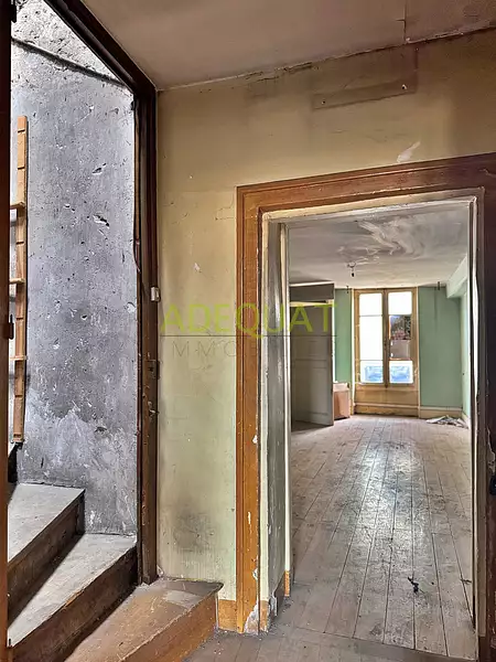 BOURGOIN JALLIEU - Appartement traversant vendu en plateau avec combles à aménager d'une surface totale de 140m2 habitable (123m2 carrez) . Il est situé au 1er et dernier étage d'une maison de ville comprenant 2 appartements. Petite copropriété à faibles charges. Il comporte actuellement au R+1, 4 grandes pièces de 13 à 20m2, wc, et à l'étage 1 grand plateau pouvant accueillir 2 belles chambres, sde et wc. Compteurs élec et eau indépendants. Un jardin privé exposé Ouest vient compléter ce bien. Cet appartement bénéficie d'une localisation idéale à proximité de la rue piétonne, commerces, écoles, arrêts de bus, jardin de ville et la gare sncf est accessible à pied.