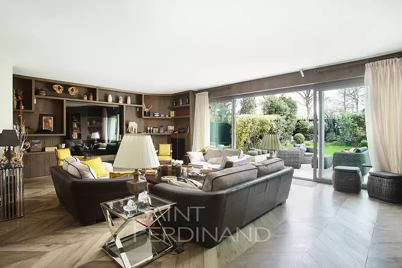 A Paris 16ème Côté Neuilly sur Seine. Face au Bois de Boulogne, l'Agence Saint Ferdinand vous propose ce magnifique appartement d'une surface de 142m²(141,41m² Loi Carrez) aux prestations haut de gamme avec jardin et terrasse arborée, (130m²). Il se compose d'une entrée, d'une vaste réception baignée de lumière donnant sur la terrasse et le jardin, d'une cuisine semi-ouverte entièrement équipée, de 3 chambres dont une suite parentale avec dressing et salle de bains, une deuxième salle de douche.