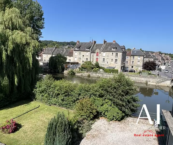 NORMANDY, 1h from the ferry port, in Putanges-le-Lac, the 1st “Station Verte” (Green Resort) of France, with all amenities right on your doorstep, is this duplex of 142 m² with a courtyard, riverside garden, and garage.