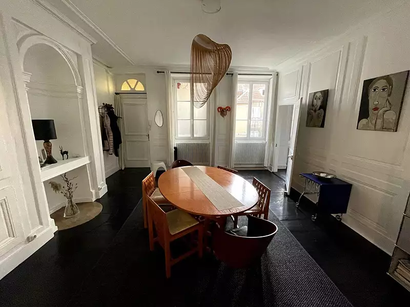 Au coeur de la boucle, très bel appartement ancien en duplex de 143 m2 entièrement rénové composé au 1er niveau : une cuisine équipée, salon, séjour, 1 chambre, 1 salle d'eau, wc séparés.