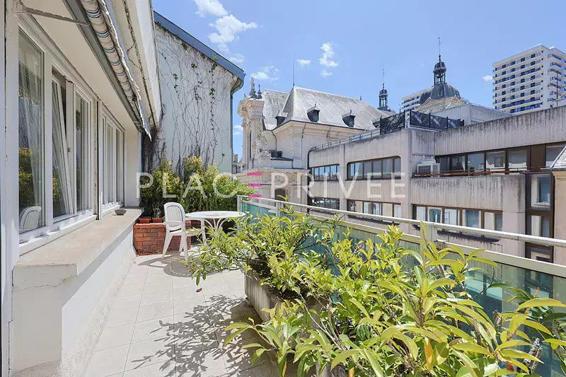 Nancy centre : Vend au coeur de Nancy, dans la rue des Ponts, cet appartement duplex de 143 m² occupant le dernier étage d'un immeuble confidentiel composé de seulement quatre lots principaux. Sa situation privilégiée, à deux pas de la place du Marché, des commerces et de la gare, offre un mode de vie citadin raffiné, entre praticité et élégance. Accessible directement par ascenseur privatif, l'appartement s'ouvre sur une entrée lumineuse qui distribue les espaces avec fluidité. Une chambre de 18 m², habillée de parquet et ornée d'une cheminée, dispose de sa salle d'eau attenante. Le vaste séjour double de 43 m², baigné de lumière, se prolonge vers une terrasse de 14 m² qui surplombe les toits et offre une vue dégagée sur le centre historique. La cuisine, indépendante, complète harmonieusement ce premier niveau. A l'étage, une pièce claire d'environ 18 m², aujourd'hui aménagée en buanderie, peut aisément accueillir une seconde salle d'eau, renforçant ainsi le confort de l'ensemble. L'appartement est équipé de fenêtres en double vitrage et de volets électriques. L'accès à la copropriété se distingue par la présence d'un escalier remarquable, dessiné par Jean Lamour, maître ferronnier de Stanislas, dont les oeuvres marquent l'identité patrimoniale de Nancy. Ce détail architectural confère à la résidence un caractère unique et une signature historique. Avec ses volumes généreux, sa terrasse ensoleillée et son emplacement recherché, ce duplex conjugue patrimoine et confort contemporain dans l'un des quartiers les plus vivants de Nancy. Les informations sur les risques auxquels ce bien est exposé sont disponibles sur le site Géorisques : www.georisques.gouv.fr. Exclusivité Place Privée Copropriété de 4 lots (Pas de procédure en cours).