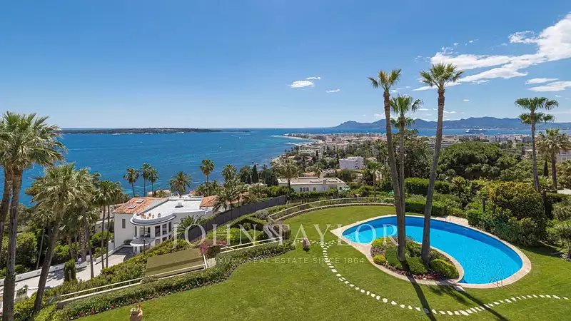 Dans une résidence de standing, cet appartement en dernier étage d'environ 144 m² offre un panorama unique sur la mer et la baie de Cannes.
