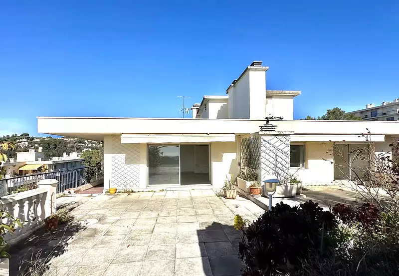 NICE - CIMIEZ : Situé dans le quartier de Cimiez, au dernier étage d’une résidence sécurisée avec gardien, cet appartement 4 pièces de 144 m² séduit par son immense terrasse de 380 m², aménagée avec un barbecue et un espace de rangement, elle offre une vue panoramique exceptionnelle sur la mer, la ville et les collines environnantes. L’appartement se compose d’une entrée, d’un séjour de 50m², d’une cuisine indépendante, d’une suite parentale, de deux chambres et de nombreux espaces de rangement. Ce bien rare, nécessite des travaux de modernisation. Un double garage avec une porte automatisée et une cave attenante complètent ce bien.