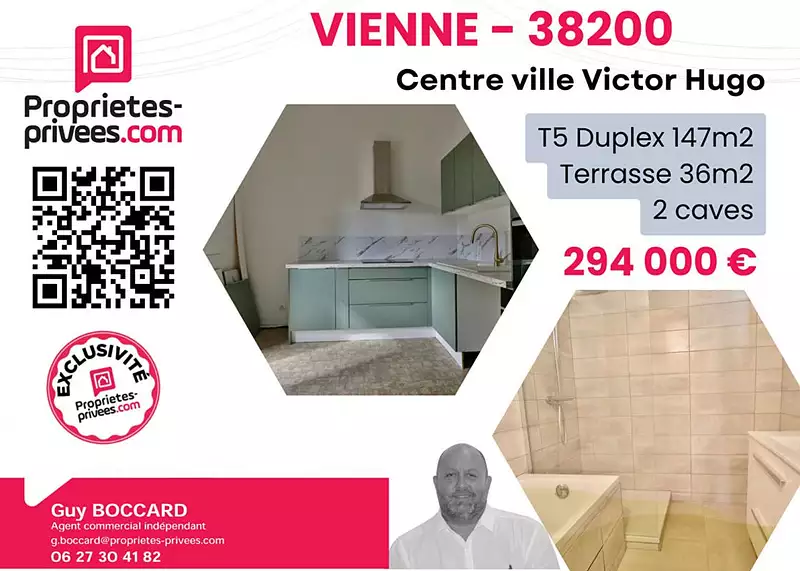 VIENNE (38), Guy BOCCARD vous propose un grand T5 en Duplex.