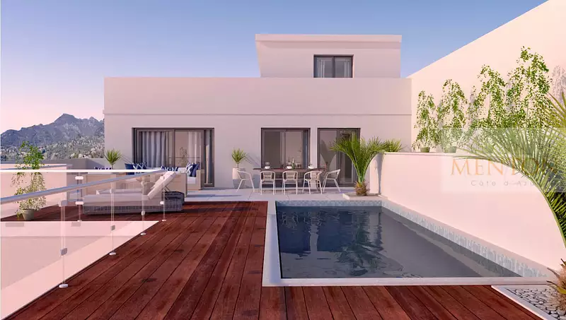 Menton annonciade , appartement villa de 148 m2 ,187 m2 de terrasse, piscine, terrain de plus de 1000m2 privatif.
