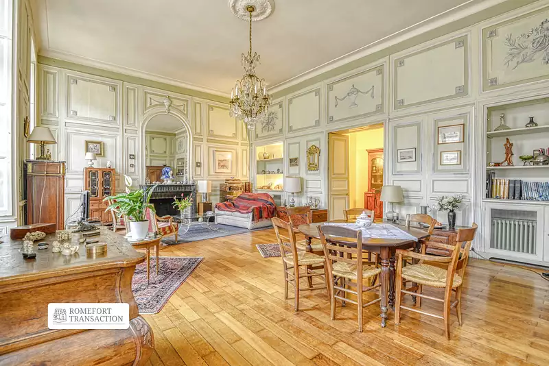 Au sein d’une copropriété ancienne de standing avec ascenseur, au calme absolu d'une élégante cour pavée, cet appartement de caractère à rafraichir de 140,87m2 carrez (148,14 au sol) se compose de la manière suivante :
