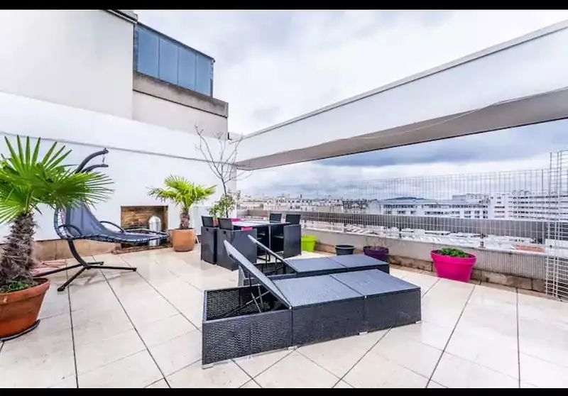 Vue Imprenable : Cet appartement offre une vue panoramique sur les toits de Paris, permettant d'admirer les monuments emblématiques de la capitale, tels que la Tour Eiffel et le Sacré-Coeur. Profitez de cette perspective unique depuis votre terrasse ou votre balcon, idéal pour des soirées en famille ou entre amis.