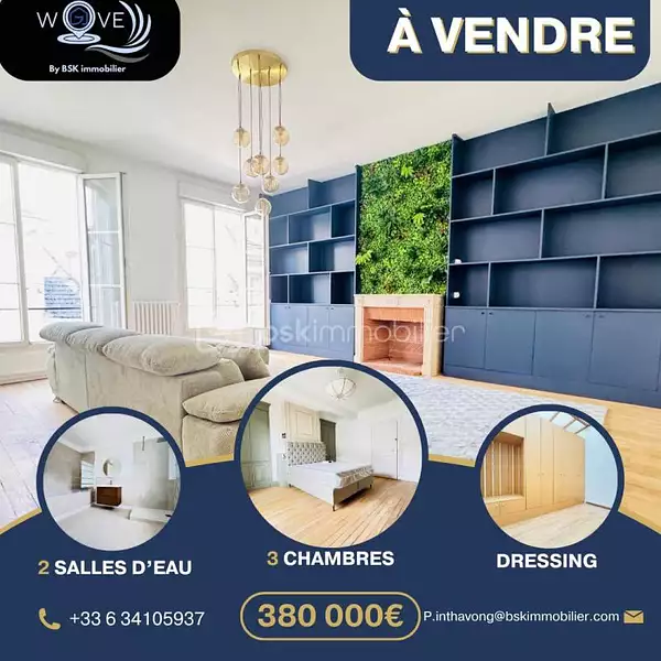 L'appartement se compose d'un salon lumineux de 30 m², baigné de lumière grâce à son exposition, et d'une cuisine moderne entièrement aménagée avec des équipements de qualité. Les trois chambres, d'environ 20 m² chacune, sont idéales pour une famille. La suite parentale dispose de sa propre salle de bain privative, tandis que les autres chambres bénéficient d'une salle d'eau supplémentaire, refaite à neuf.