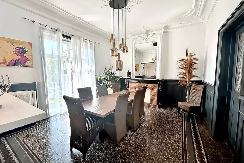 Élégance, cachet et prestations rares Rarissime ! Découvrez ce superbe appartement de caractère d'environ 150m² habitables, idéalement situé au premier étage d'une petite copropriété confidentielle. Il bénéficie d'atouts exceptionnels : garage spacieux, cave, jardin privatif et belle terrasse. Dès l'entrée, le charme de l'ancien opère : hauteur sous plafond majestueuse, moulures raffinées, cheminées d'époque en marbre. L'espace de vie se compose d'une cuisine équipée contemporaine, ouverte sur une salle à manger chaleureuse, offrant un bel ensemble de 31 m² propice à la convivialité. Depuis la cuisine ou la salle à manger, vous accédez à une véranda baignée de lumière, prolongée par une terrasse, idéale pour profiter de moments de détente en plein air. Un vaste dégagement mène au salon de 28 m², véritable cocon pour recevoir famille et amis. L'espace nuit propose deux chambres élégantes de 14 et 16 m², ainsi qu'une salle d'eau avec toilettes, entièrement rénovée. Espaces annexes : - Un cellier fonctionnel de 8 m² - Une buanderie indépendante de 10 m² - Des toilettes supplémentaires avec lave-mains Prestations techniques : - Électricité refaite à neuf - Pompe à chaleur intégrée en sous-plafond (chauffage et climatisation) - Double vitrage pour un confort optimal - Toiture entièrement rénovée en 2022 - Ascenseur Le garage d'une surface remarquable de 75 m² accueille aisément deux véhicules et offre un accès direct au jardin. Un grand studio indépendant peut d'ailleurs y être envisagé selon vos projets. Enfin, le jardin privatif de 254 m², entièrement clôturé, sans vis-à-vis et au calme, constituera un véritable écrin de verdure en plein centre-ville. Un bien rare alliant charme, confort moderne et espaces extérieurs exceptionnels - à visiter sans tarder. Videos à la demande. Prix TTC et Honoraires à charge vendeur TTC Agent commercial Sextant France - Vani Mercier agent basé à ALES - 06 20 91 32 44 - Plus d'informations sur réf. 26061