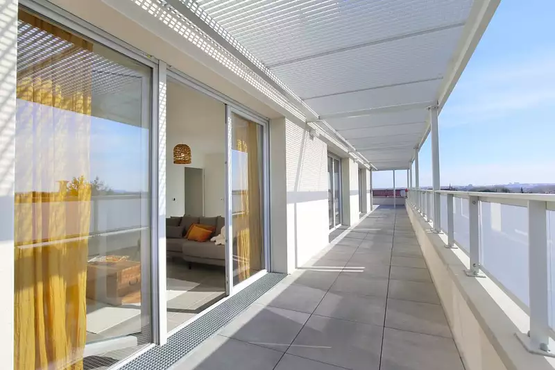 Magnifique appartement 5 pièces duplex en TOIT TERRASSE de 148m² avec grande terrasse de 100m² faisant le tour de l'appartement, situé à BLAGNAC au pied d'un arrêt de TRAMWAY. -Grand séjour lumineux de 65m² ouvert sur cuisine, le tout donnant accès à cette terrasse sans vis-à-vis. -4 grandes chambres dont deux suites avec salle d'eau privative. -Salle de bain avec sèche serviettes et WC. -2 WC séparés. -Cellier dans l'appartement de 6m². -2 places de parking en sous-sol. Maxime FONTENELLE LES CLEFS TOULOUSAINES