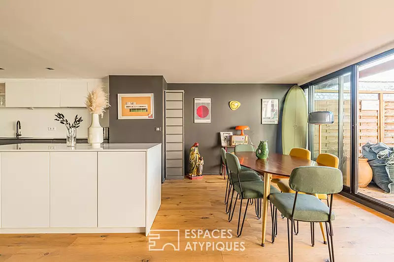 Idéalement situé aux Chartrons à Bordeaux, cet appartement en duplex d'environ 150 m² Carrez (180 m² au sol) offre un cadre de vie exceptionnel, agrémenté d'une belle terrasse de 28 m² exposée Ouest. Cet appartement, niché au deuxième étage d'une petite copropriété de quatre appartements, se distingue par son élégance et ses volumes généreux. L'entrée ouvre sur une pièce de vie spacieuse et lumineuse, véritable coeur du bien. De grandes baies vitrées inondent l'espace de lumière naturelle et offrent un accès direct à la terrasse, créant une harmonie parfaite entre intérieur et extérieur. La cuisine moderne et fonctionnelle s'intègre avec fluidité à cet espace ouvert. Une magnifique suite parentale, véritable havre de paix, dotée d'une salle d'eau privative et d'un dressing aménagé, offre un confort optimal. Un bureau, une grande buanderie et des toilettes séparées complètent ce niveau. A l'étage, l'espace nuit se compose de trois chambres. Une salle d'eau et des toilettes supplémentaires complètent cette distribution. L'extérieur, avec sa terrasse généreuse, invite à profiter de magnifique couché de soleil. Ce bien atypique conjugue avec brio l'esprit loft et le confort moderne. Sa luminosité, ses volumes ouverts et sa terrasse au calme en font un lieu de résidence rare. Doté d'une excellente performance énergétique (DPE en C) grâce à des chauffages à inertie neufs, ce bien inclut également un garage fermé, un atout indéniable dans ce secteur recherché. CLASSE ENERGIE : C/ CLASSE CLIMAT : A. Montant moyen estimé des dépenses annuelles d'énergie pour un usage standard, établi à partir des prix de l'énergie de l'année 2021 : entre 1410 euros et 1960 euros. Copropriété de 8 lots - dont 4 lots habitation. (Pas de procédure en cours). Charges annuelles : 1600 euros.