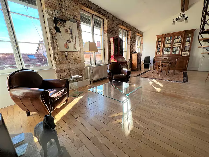 EXCLUSIVITE, Lyon 4, au coeur de la croix rousse, très bel appartement au 5ème et dernier étage. Ce bien très lumineux possède une pièce de vie de 50m2 et une hauteur sous plafond de 5m80. Cette pièce s'harmonise autours d'un séjour avec cuisine équipée, un salon et sa belle cheminée et un espace cosy . Une mezzanine aux courbes légères abrite une chambre et une salle d'eau. L'espace nuit est composé d'une salle de bain, 3 chambres et un grand dressing. Vous serez séduits par cette rénovation contemporaine et fonctionnelle qui a su garder le charme de l'ancien. Immeuble sans ascenseur, à proximité immédiate de toutes commodités (métro, bus, école, commerces). Ce bien possède également 2 caves. DPE ( C et C) Pour visiter : Julie Damour 06/20/50/03/59 Copropriété de 24 lots (Pas de procédure en cours). Charges annuelles : 1080 euros.
