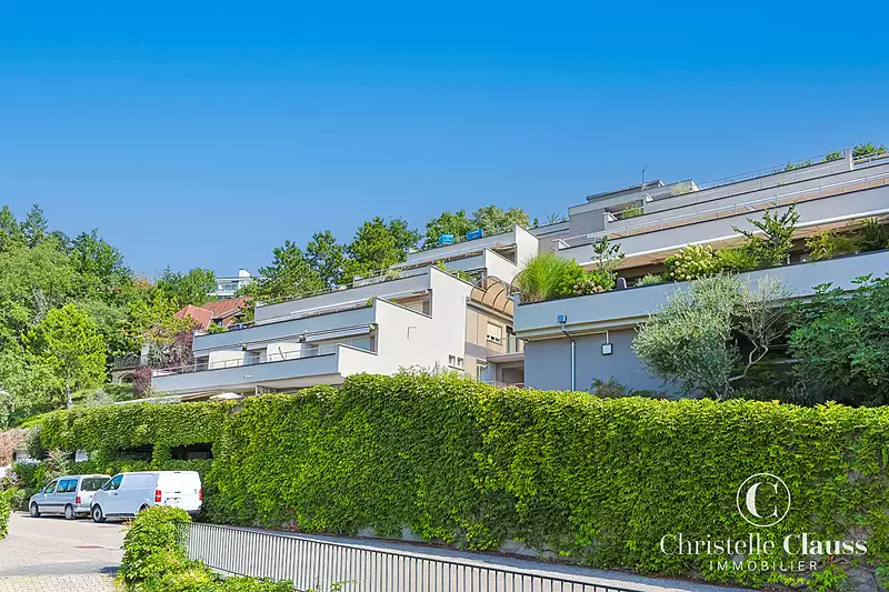 Obernai Situé au mont National, sur la moyenne Corniche, dans un environnement d'exception, cet appartement en duplex de 153 m² est niché au 5ème étage d'une résidence avec ascenseur. Au 1er niveau, vous serez séduits par un vaste salon-séjour d'environ 35 m² donnant accès directement sur une magnifique terrasse de 80 m² avec une vue imprenable sur le Mont Sainte Odile. Ce niveau comprend également une cuisine indépendante, deux chambres spacieuses 17 et 15 m² hab, une salle d'eau et un toilette indépendant. Le niveau inférieur soit au 4eme étage est composé deux belles chambres de 14 et 15 m² hab dont une donne accès à une terrasse, une salle d'eau et un toilette indépendant, d'un sauna et d'une buanderie situés dans l'espace cave d'environ 32 m² de ce niveau. Ce bien dispose également d'un garage individuel. Il est également possible d'acquérir un 2eme garage simple pour 30000 euros. (4.84 % honoraires TTC à la charge de l'acquéreur.) Copropriété de 40 lots - dont 21 lots habitation. (Pas de procédure en cours). Charges annuelles : 2900 euros.