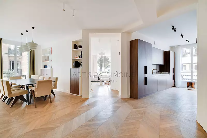 Au coeur du 7e arrondissement, à proximité immédiate du Champ-de-Mars et des quais de Seine, Artis Patrimoine vous propose en exclusivité cet élégant appartement de 160 m² dans un immeuble ancien de grand standing avec ascenseur. L'entrée majestueuse distribue en étoile l'ensemble des pièces de vie, offrant une circulation fluide et intuitive. La cuisine, indépendante (mais ouverte) et réalisée sur mesure avec des matériaux de grande qualité, est pensée comme une pièce à part entière, fonctionnelle et chaleureuse. Le séjour, particulièrement lumineux grâce à ses trois fenêtres en rotonde, bénéficie d'une atmosphère accueillante. La salle à manger, elle aussi indépendante mais ouverte, prolonge élégamment l'espace de réception, idéale pour les repas en famille ou entre amis. L'appartement dispose de trois chambres, dont une suite parentale avec un dressing intégré et une salle d'eau attenante avec toilettes. Une salle de bain supplémentaire, équipée d'un espace buanderie, ainsi qu'un WC indépendant viennent compléter l'espace nuit. Chaque détail a été soigneusement pensé et exécuté avec des finitions haut de gamme, mêlant harmonieusement le charme de l'ancien à une rénovation contemporaine d'exception. Ce bien rare bénéficie d'une adresse confidentielle, dans un environnement calme et élégant, à proximité des écoles réputées, des commerces de la rue Saint Dominique, et des transports. Un appartement clé en main, idéal pour une famille en quête d'un cadre de vie raffiné au coeur de la rive gauche parisienne. (3.87 % honoraires TTC à la charge de l'acquéreur.) Copropriété de 48 lots - dont 40 lots habitation. (Pas de procédure en cours). Charges annuelles : 8170 euros.