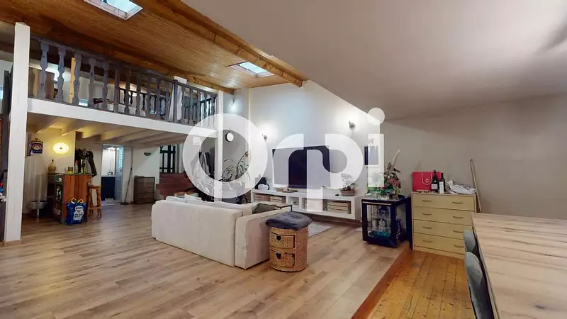 Vous trouverez un appartement de type "Loft" de 160m2 environ situé au rez de chaussée de deux copropriétés comprenant : une entrée, un vaste salon / séjour / salle à manger, une cuisine, une buanderie, une mezzanine, trois chambres, une salle de bains, une salle de douche et un WC séparé.